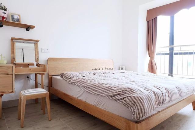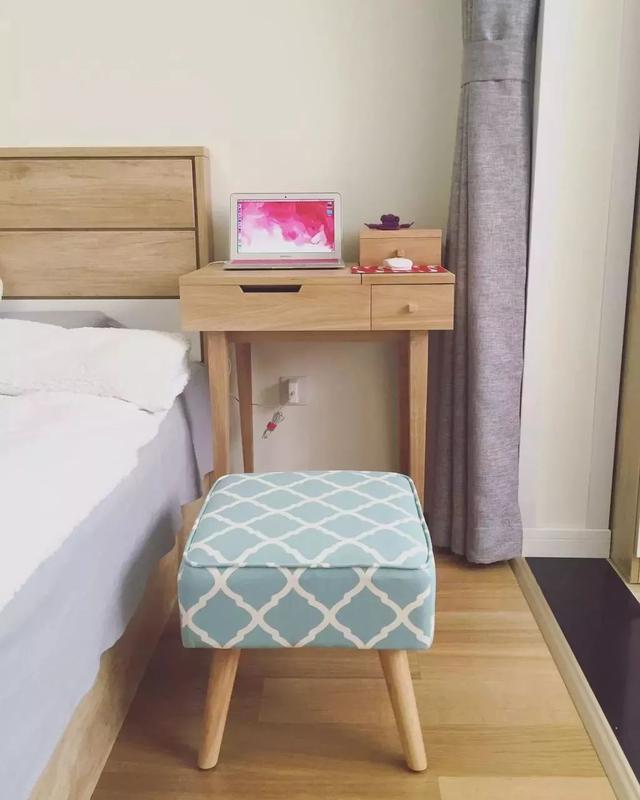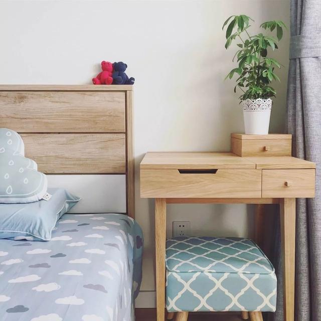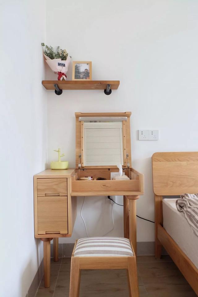 原木色梳妝臺,即可充當(dāng)電腦桌;