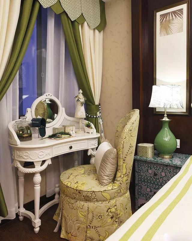是的,把梳妝臺放在床的側(cè)邊也是個不錯的選擇,剛好挨著窗邊,光線也不會昏暗;